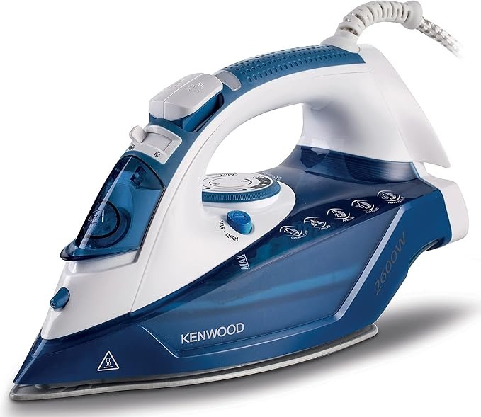 - مكواة بخار بقدرة 2600 وات من كينوود، بخار حتى 140 جرام، انبعاث بخار 45 جرام/دقيقة، مضادة للتنقيط ومضادة للتكلس – STP75.000WB